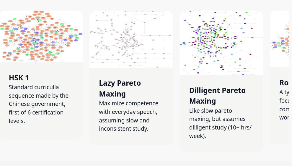 There are so many different ways to prioritize which words to include, which words to link. This graph is made from the official HSK Level 1 words, then simply linked to their immediate children. I also included the frequency rank of each word in parenthesis. I put together some other possible graphs like this, not totally sure where to go from here.